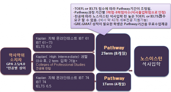 노스이스턴대학교 학사 프로그램 타대학 학부(미국 또는 다른 나라)에서 50학점 정도의 학점을 취득한 학부생들은 학위프로그램에 들어갈 수 있습니다.