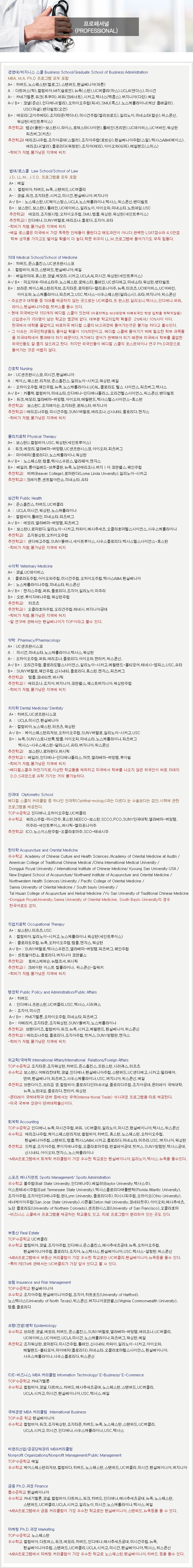 전공별 대학랭킹&추천학교